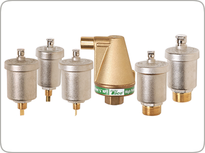 Taco Hy -Vents® La alta capacidad de ventilación de estilo float se puede colocar en la caldera o en los puntos altos de todo el sistema. Los respiraderos son de fácil mantenimiento, simplemente desenroscando la tapa de ventilación.