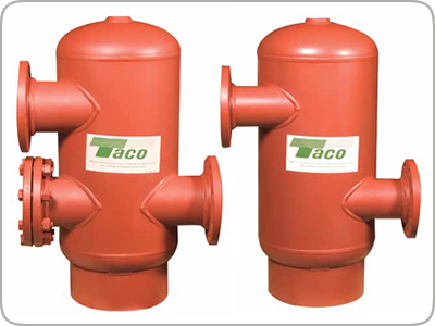 El aire atrapado en el sistema puede producir problemas importantes como la reducción de la transferencia de calor, pérdida de la eficiencia, corrosión de las tuberías, daños a la bomba, aumento del consumo de energía y ruido irritante. El separador de alta eficiencia de Taco serie ACT pasa por el sistema libre de aire y reduce el sedimento disuelto para ahorrar dinero, energía y desgaste de los componentes.
